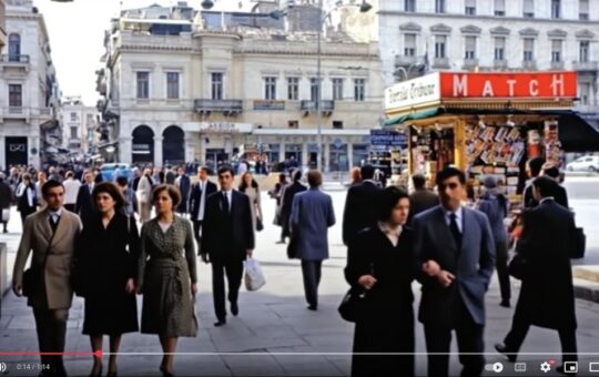 Yapay zeka tarafından oluşturulan bir videodan alınan ekran görüntüsü, 1960'ların sonlarında Atina'nın merkezi Omonia Meydanı'nı gösteriyor. Bageion Oteli ve üzerinde...