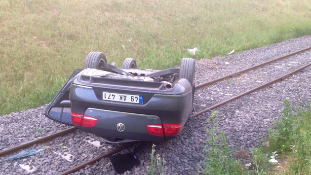 Kontrolden çıkan otomobil tren yoluna devrildi